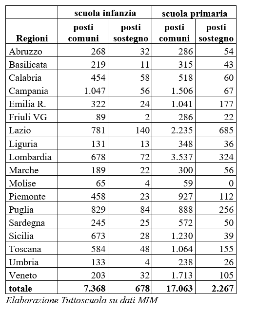 Questo il quadro dei posti per regione e per tipologia.