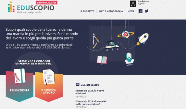 Disponibile online la nuova edizione di Eduscopio.it, il portale della Fondazione Agnelli che ogni anno mette a disposizione dati aggiornati sulle scuole secondarie di II grado, offrendo a studentesse, studenti e famiglie uno strumento per orientarsi nella scelta dopo la terza media. Anche per il 2025 il sito consente di confrontare, città per città e indirizzo per indirizzo, quali istituti preparano meglio agli studi universitari o all’ingresso nel mondo del lavoro.