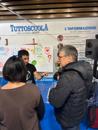 Per ‘dare corpo’ a quanto presentato in sala, nello stand di Tuttoscuola si è svolto subito dopo il laboratorio “Mano, Mente, Cuore”, condotto dagli educatori di Scholas Occurrentes, che ha trasformato quei principi in esperienza viva, coinvolgendo i partecipanti in attività simboliche e partecipative.